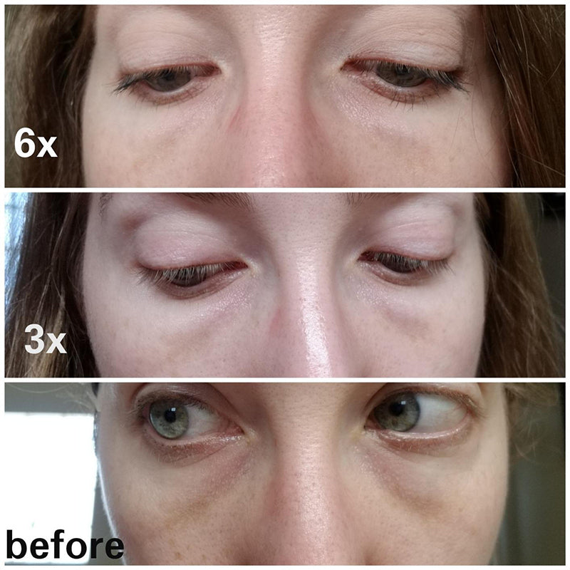 I have always had terrible dark circles and puffiness from sinus issues. This is literally the first product to ever actually help fade my dark circles, and I have tried tons of other products. Pictured is before, after 3 uses, and after 6 uses in the same lighting in every photo. I have seen a huge difference in my under eye bags being less dark and puffy. Amazing product!